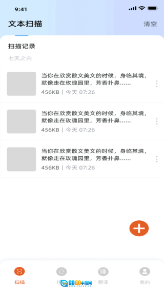 在首页即可看到文本扫描功能和扫描记录;