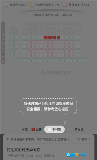 当然由于特色时期,电影院将位置调整为了安全距离。