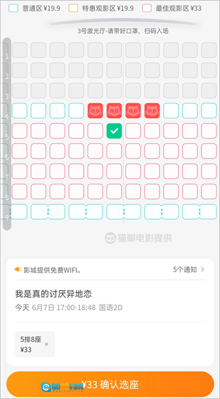 在爬爬资源豆瓣电影最新版中,打开应用后选择自己想看的电影,就能进行选座购票操作了。