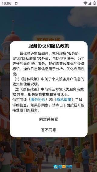 首次打开应用时,需阅读服务协议与隐私政策,并点击同意按钮。