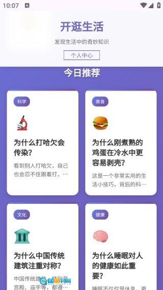 开逛生活是一款把知识学习变成轻松日常探险的趣味答题应用。它如同一座可移动的趣味博物馆,收藏着从出人意料的冷知识到实用的生活小窍门等各类百科内容,借助每日精心策划的推荐和问答挑战,在好奇心的引领下,让用户利用碎片时间愉悦地拓宽认知范围,发掘平凡生活里的奇妙之处。