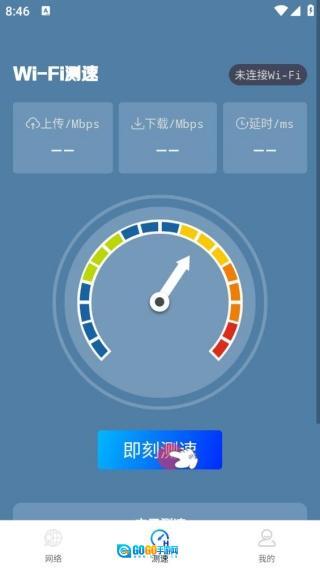 点击“测速”按钮,即可进入WiFi测速界面,便于用户快速点击开展测速操作。