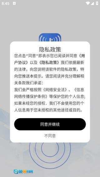 软件安装完成后打开,会弹出隐私政策页面,阅读完毕后点击“同意并继续”按钮即可。