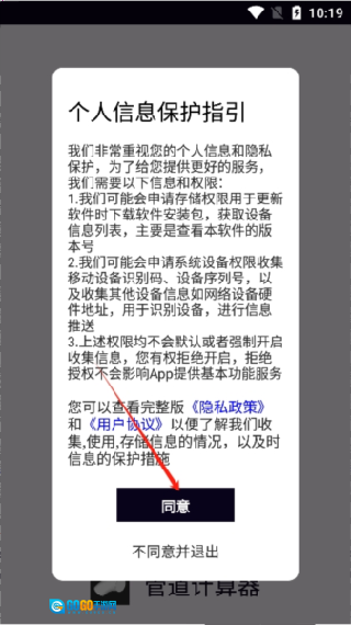 打开软件后,请先仔细阅读管道计算器的用户协议并点击同意。