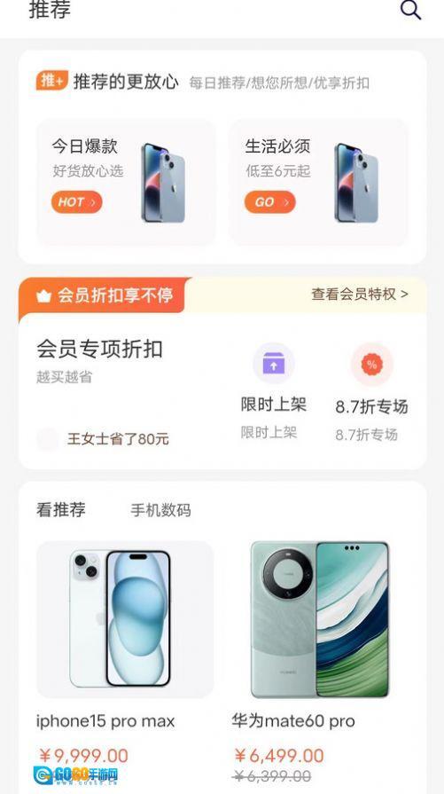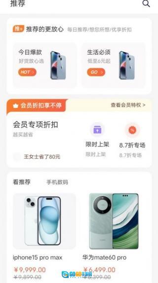 安装好后,在首页能随时浏览到各式各样的商品,涵盖数码产品、生活用品等众多品类。