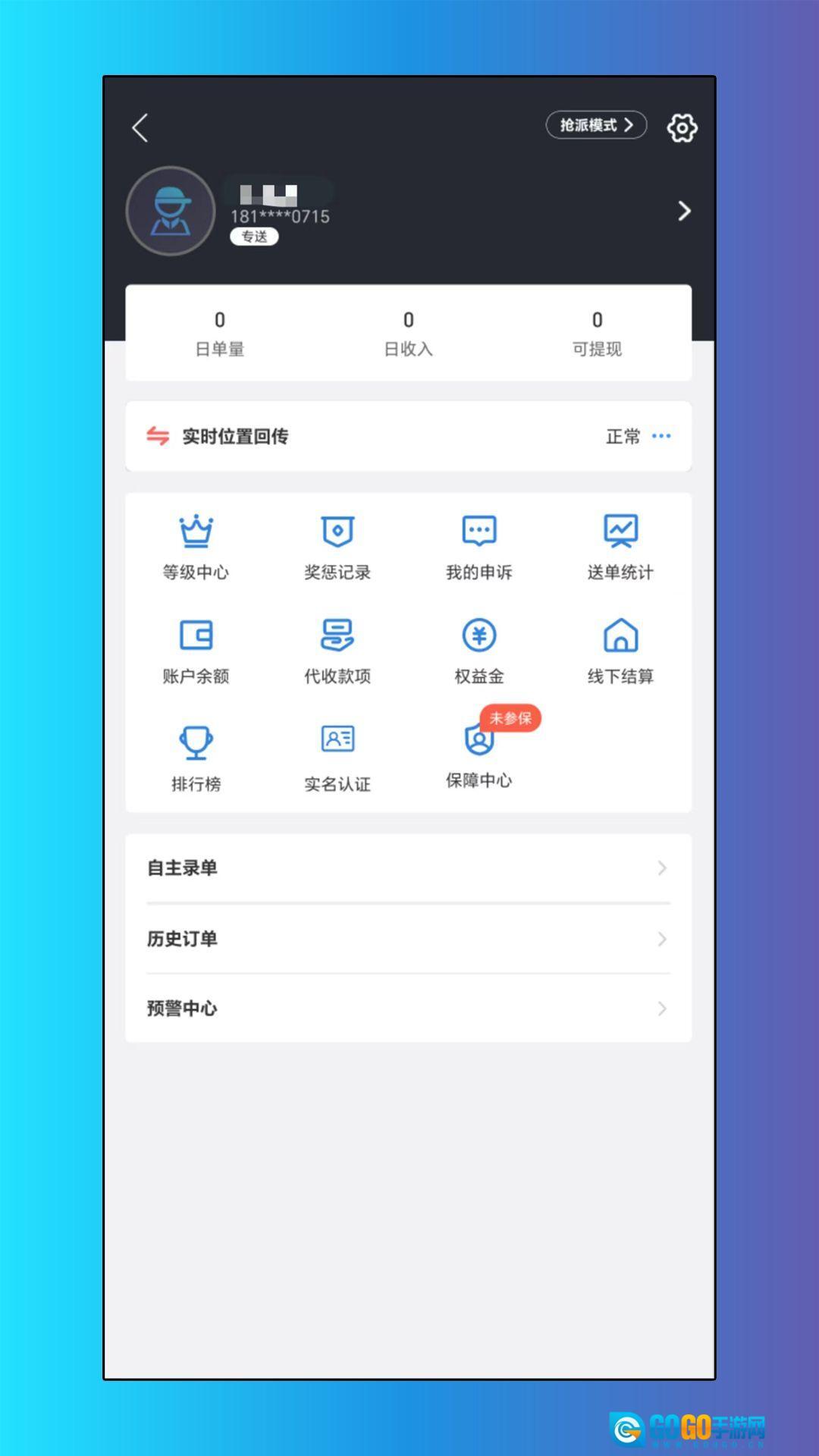 配送员能在个人中心里查看自己的收入余额,还可以随时把赚到的钱提现到个人账户,这样管理起来会很方便。