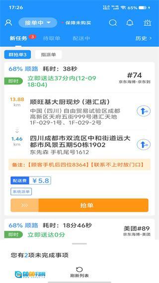 按照操作指引就能快速完成抢单和接单,接到订单后可以直接依据订单上的地址进行配送作业。