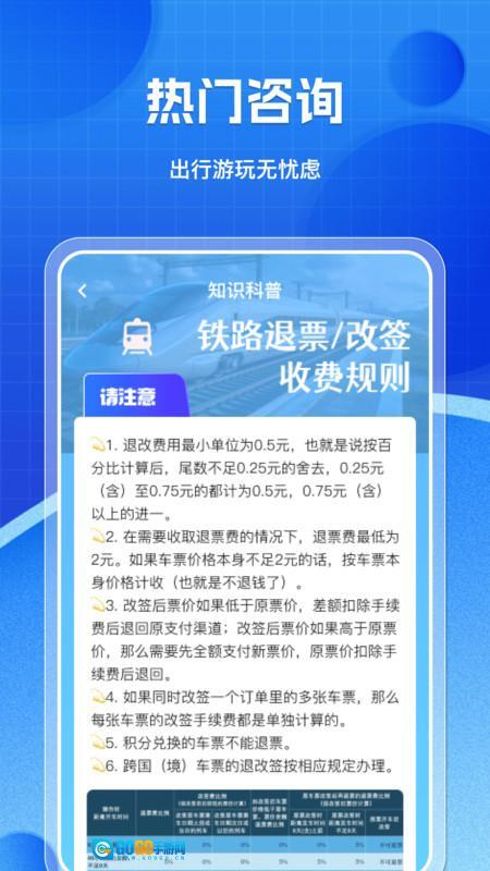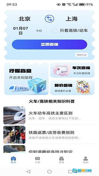 安装完成进入首页后,这里不仅支持车票查询功能,还提供出行知识科普内容。