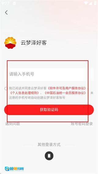 3、进入登录界面后,先输入手机号,接着勾选相关协议,随后点击“获取验证码”按钮。