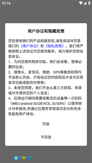 首次使用时,请阅读并同意用户协议与隐私政策。