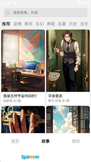 故事类型很丰富,支持文字阅读等。