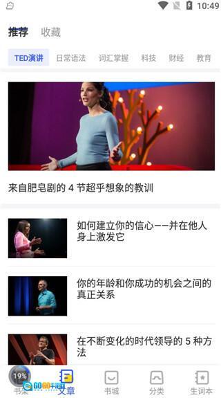 点击文章后进入相应页面,用户能浏览到大量优质英文文章,还可以对自己喜爱的内容进行收藏操作。