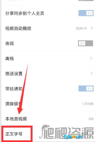 “设置”的页面,点击“正文字号”。