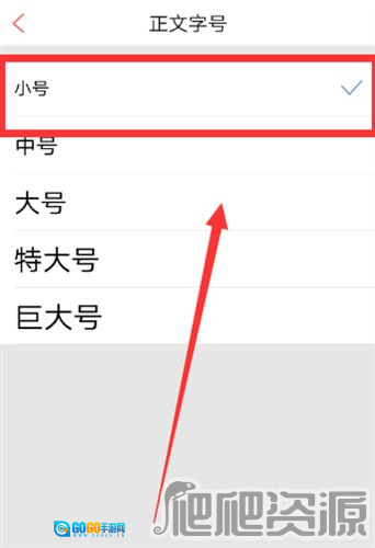 “正文字号”的页面,显示字体为小号。