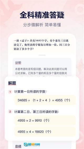 这款在线学习辅助工具软件十分全面智能,它支持随时使用且无需会员,对每一道题都进行详细讲解,采用分析、解题、总结的三段式方法,讲解内容通俗易懂,能让学生更轻松地理解知识。