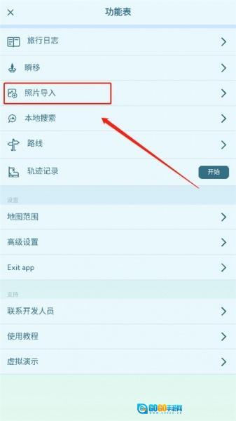 在“功能表”页面选择“照片导入”选项。