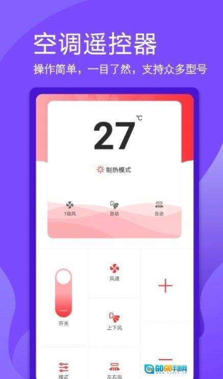 超控智能遥控器是遥控精灵里一款能远程控制空调的手机应用。它功能很强大,和普通空调遥控器的作用差不多。可以连接家里大部分主流品牌的空调,通过手机就能轻松完成空调的开关、温度以及模式的调节,远程操作方便又快捷。有了它,就不用再为找遥控器或者买新遥控器而发愁了,绝对是日常生活中必不可少的实用工具。