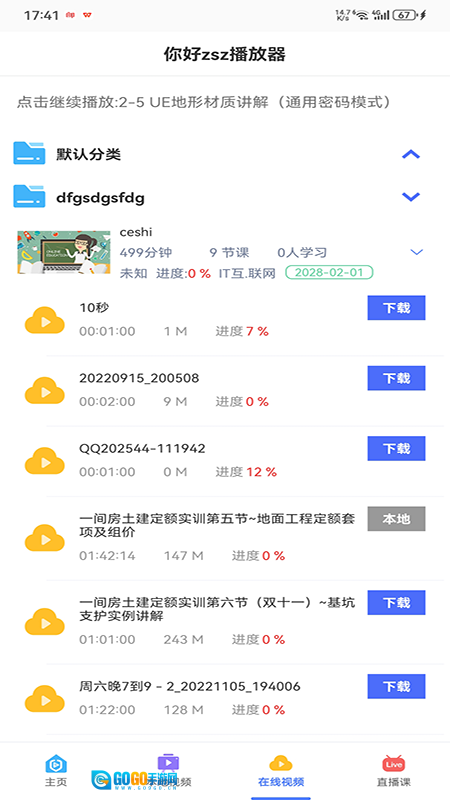 用户可在软件的“在线”或“学习”板块,浏览、搜索并观看各类在线视频内容以及正在直播的课程。