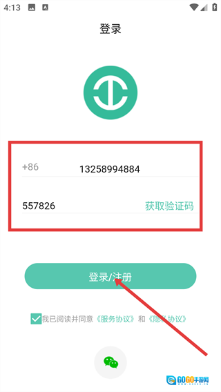 2、进入登录界面后,先输入手机号码,接着点击【获取验证码】按钮,待收到验证码并填入后,勾选同意相关协议,最后点击【登录/注册】按钮,即可完成登录或注册流程。