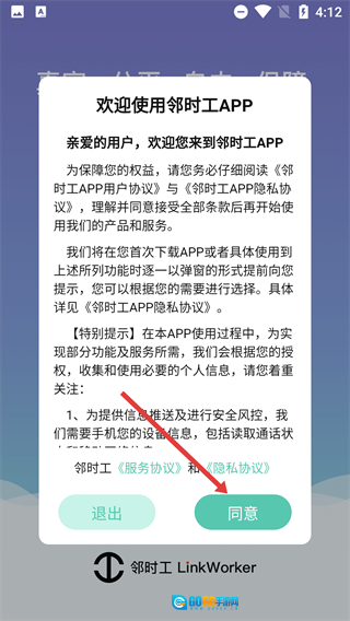 使用【邻时工】服务前,请务必仔细阅读《邻时工用户协议》和《隐私协议》,只有点击【同意】按钮后,才能继续使用相关服务。