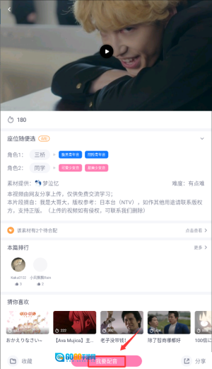 1、趣味配音模块:可挑选热门动漫或日剧片段开展配音创作,还能和其他爱好者互动交流。