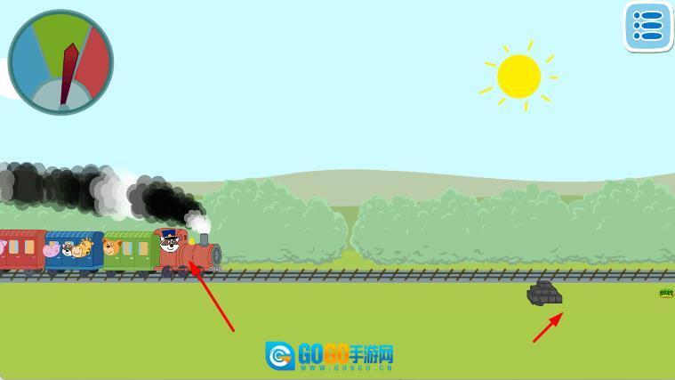 登上火车,开启驾驶模式,借助屏幕上的操作按钮,控制火车沿轨道前行,需留意避让障碍物,保障火车平稳安全地行驶。