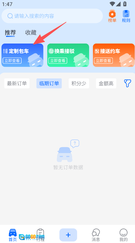 1、进入软件,点击定制包车进入对应服务界面。