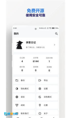 侠客日记是一款别具一格的智能化简约日记应用,致力于为用户打造一个可个性化记录生活片段的平台。用户在此不仅能便捷地书写文字日记,还可通过插入图片、音频、视频等多元内容来留存自身的思绪与情感,让每一篇日记都拥有鲜活的生命力。