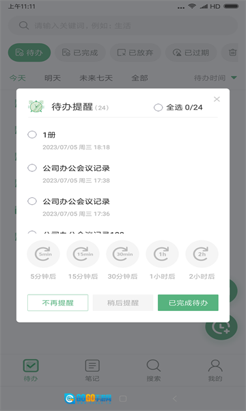 2、待办提醒