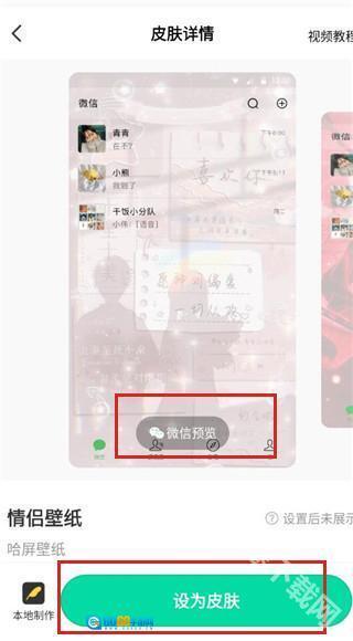 2、挑选一张壁纸点击进入,可选择设为皮肤,也能通过微信预览效果。