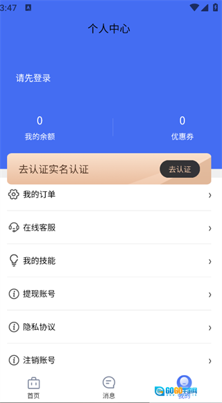 点击页面下方的“我的”选项,就能看到我的订单、在线客服、我的技能等相关功能。
