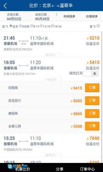 一次搜索,全网特价机票比价!