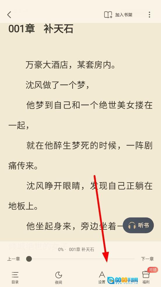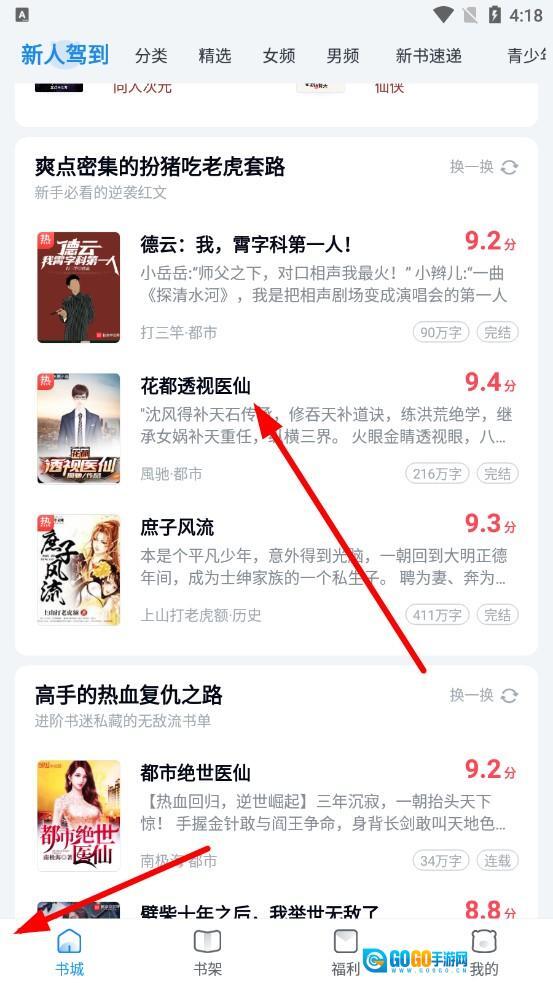 打开飞读小说应用,进入书城页面后,点击小说的封面图就能进入阅读页面了。