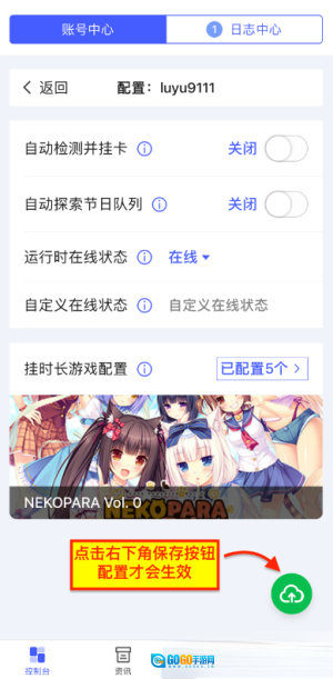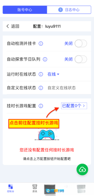 3. 要是只想挂时长,其他选项都不用调整,直接点击挂时长游戏配置的按钮就行。