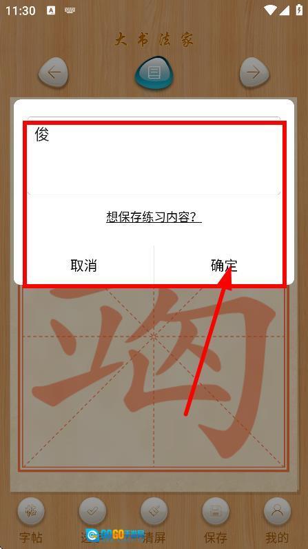 选字后,弹出提示框,点击确定,可保存练习内容。