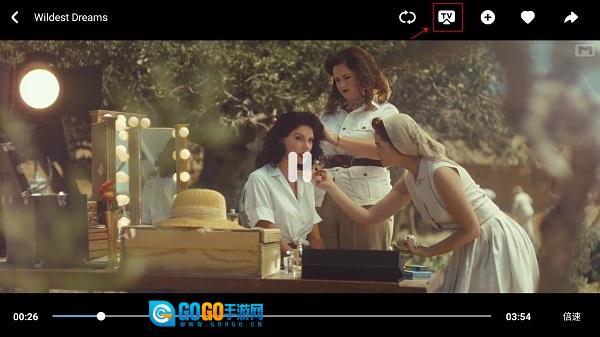 2、轻点屏幕任意地方,菜单选项就会弹出,在右上方找到“TV”图标,音悦台随即自动搜寻投屏设备,接着只需等待连接成功,就能将MV投屏至电视或其他智能硬件设备上。