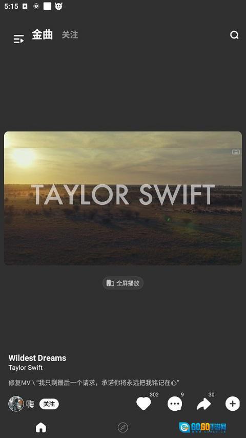 1. 打开“音悦台”,查找你所点播的歌曲,参照图示,点击“全屏播放”。
