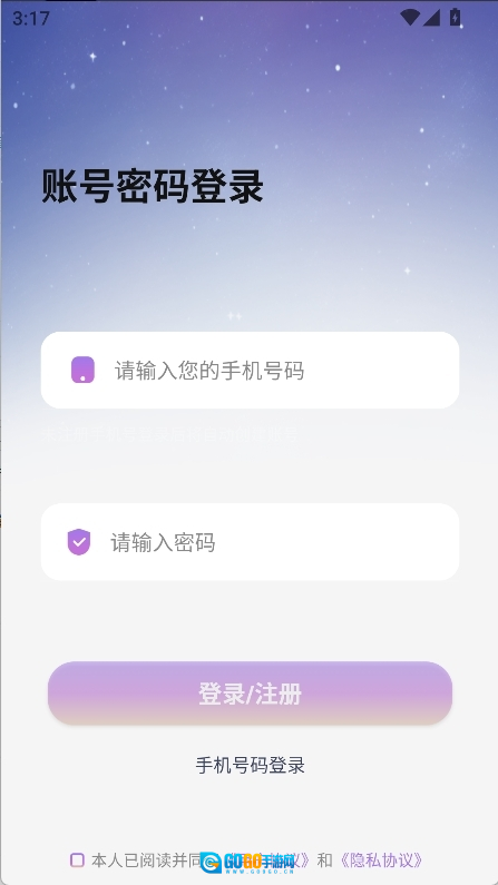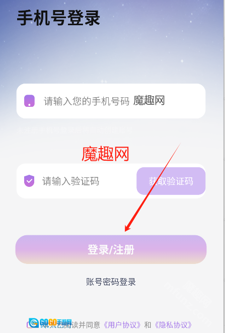 注:首次使用的使用直接输入手机号以及验证码即可自动注册账号!