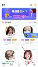 在推荐页面,用户能浏览【优质主播】清单,可通过【视频通话入口】参与抢聊,也能体验【视频速配】功能,页面底部设有切换至【我的】页面的入口。