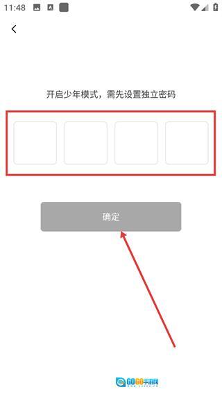 4、开启青少年模式前需先设置4位独立密码,在输入框中填写该密码后,点击【确定】按钮就能完成模式开启操作。