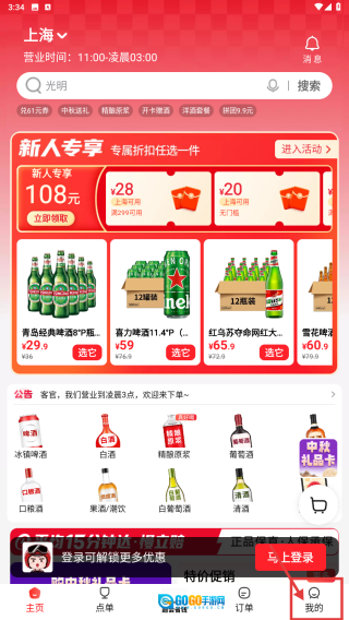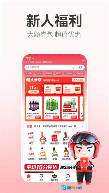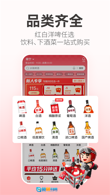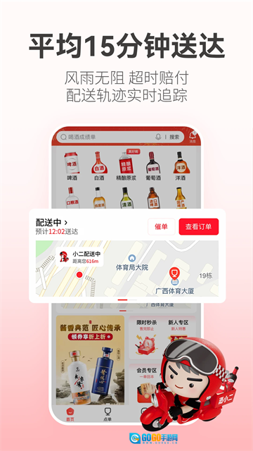 极速同城配送服务:借助前置仓与专业配送团队的紧密配合,让同城酒水订单在下单后25分钟内就能快速送达,有效减少用户的等待时长,满足大家即时饮用的需求。
