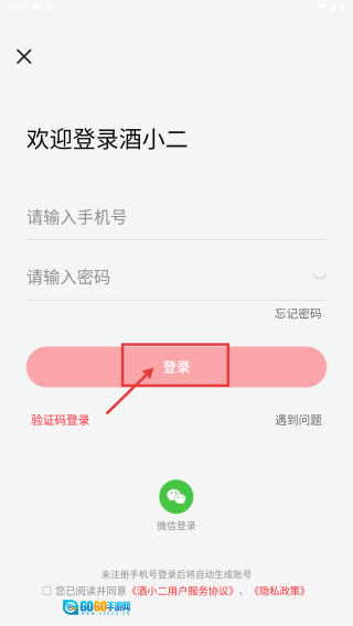 在密码登录界面,填写手机号码与密码后,点击登录按钮,即可完成登录流程。