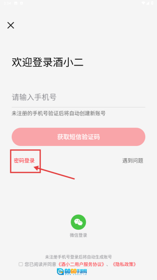 在登录界面,选择密码登录选项,即可进入密码登录页面。