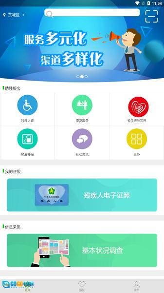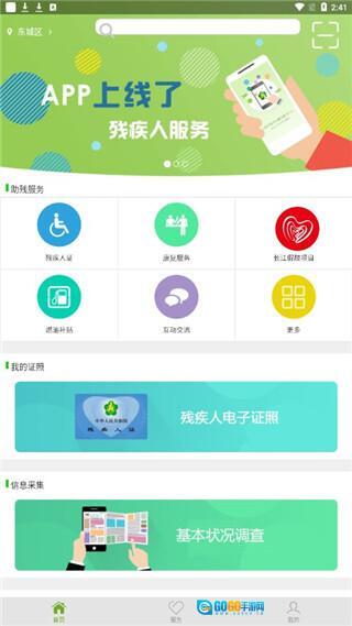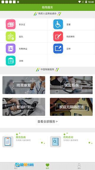 1、打开残疾人服务App,在首页就能看到各类服务功能;