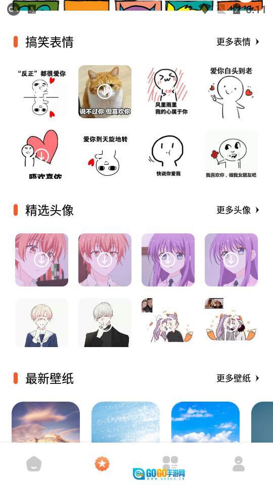 1、首先打开并进入软件,切换至第二个页面后向下滑动,便能看到【定制表情包】,如下图所示;