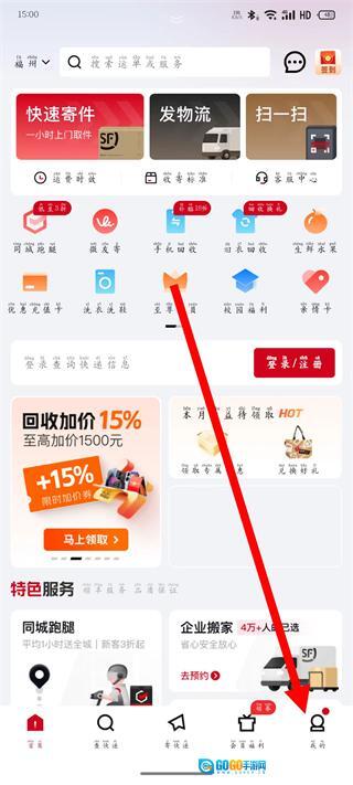 打开顺丰速运应用,在主界面点击底部的“我的”选项,即可进入个人中心页面。
