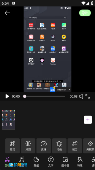 2、在视频剪辑软件里导入手机里的一段视频,接着进入剪辑界面去操作各类功能;