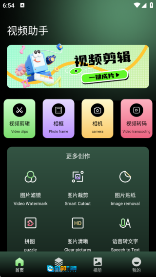 首页集成了视频剪辑、相框、相机、视频转码、图片滤镜、图片裁剪、图片贴纸以及拼图等多种功能。