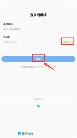 2、选择“手机登录”选项,进入验证码接收页面以完成身份认证。
