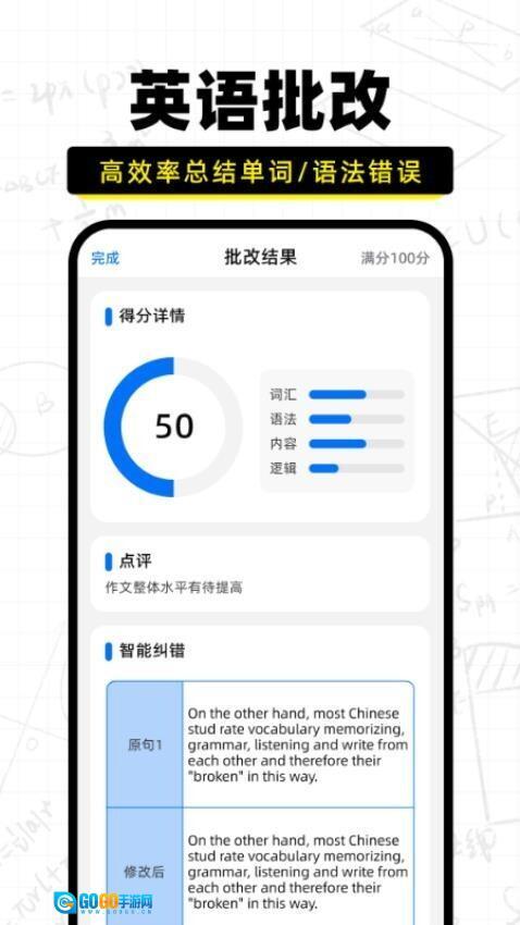 2、覆盖多学科领域,具备数学公式识别、英语语法检查等专业批改功能,可满足全科学习需求。